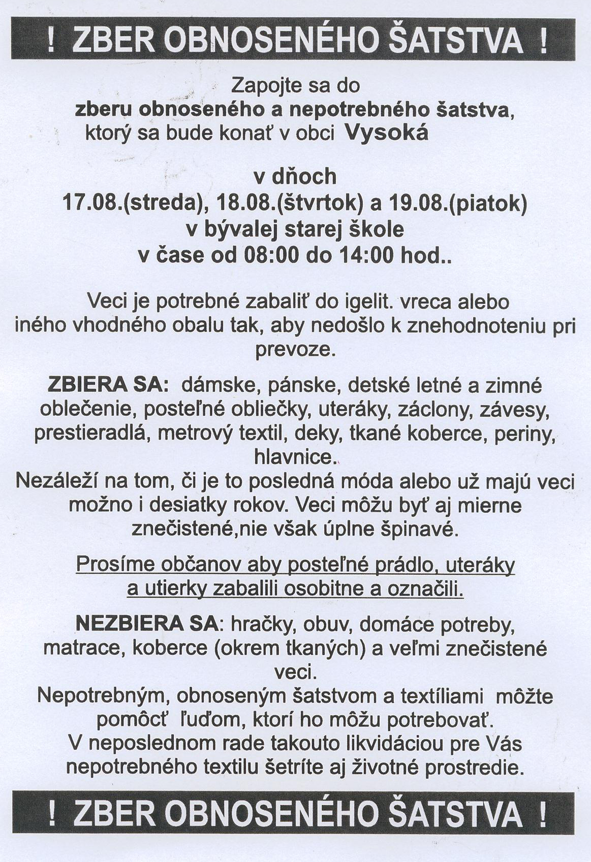Obecného zastupiteµstva vo Vysokej,