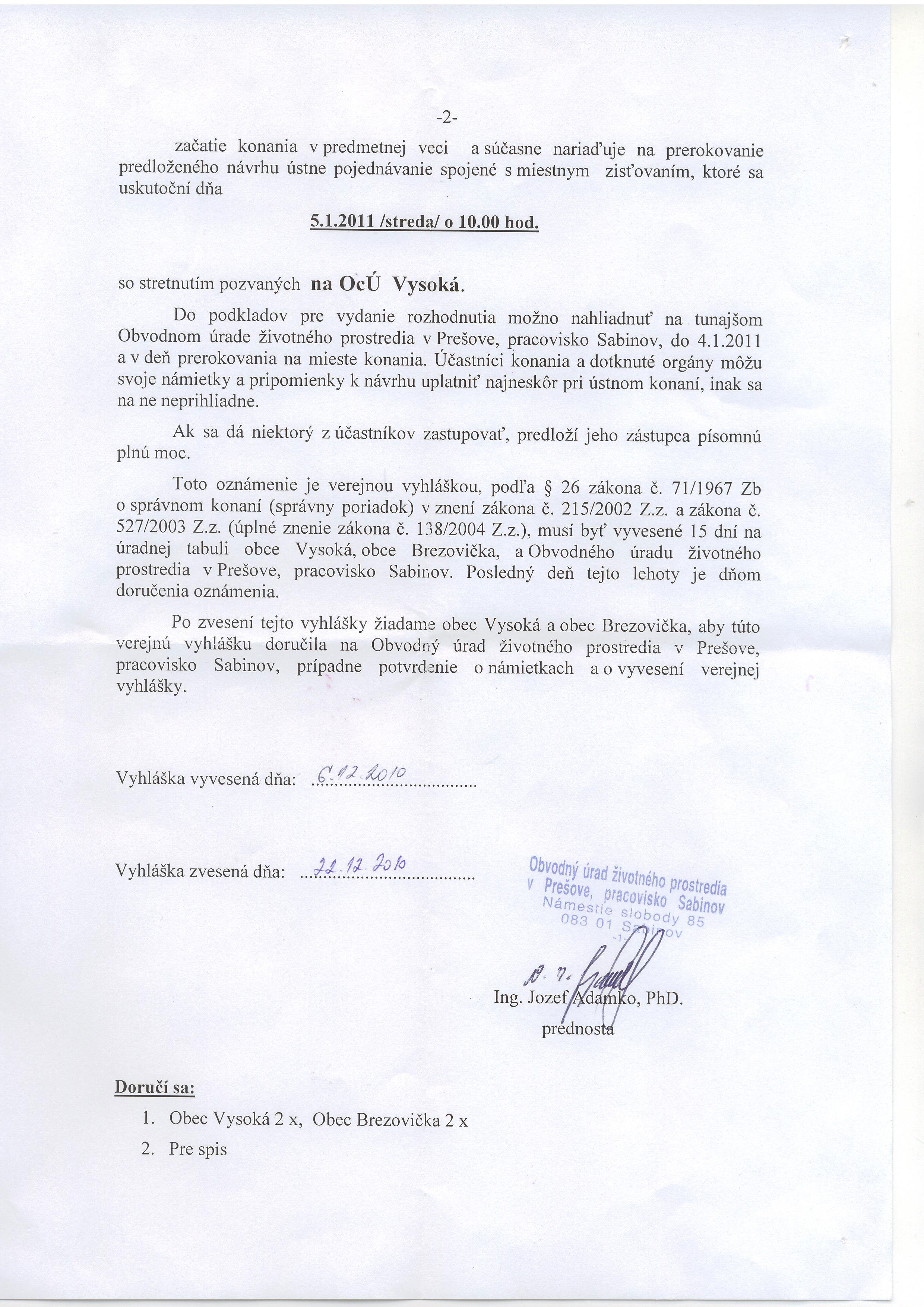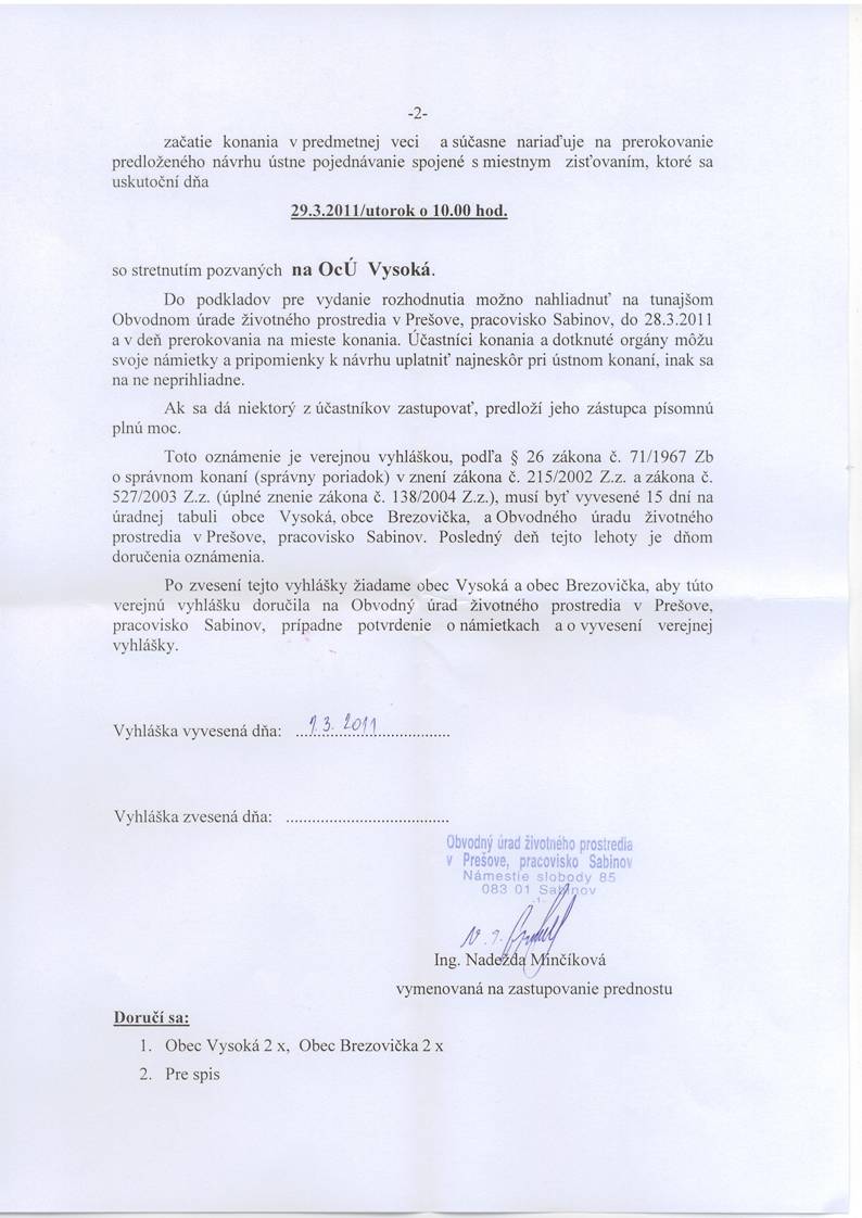 29.3.2011 o 10:00 hod v priestoroch OcÚ VYSOKÁ