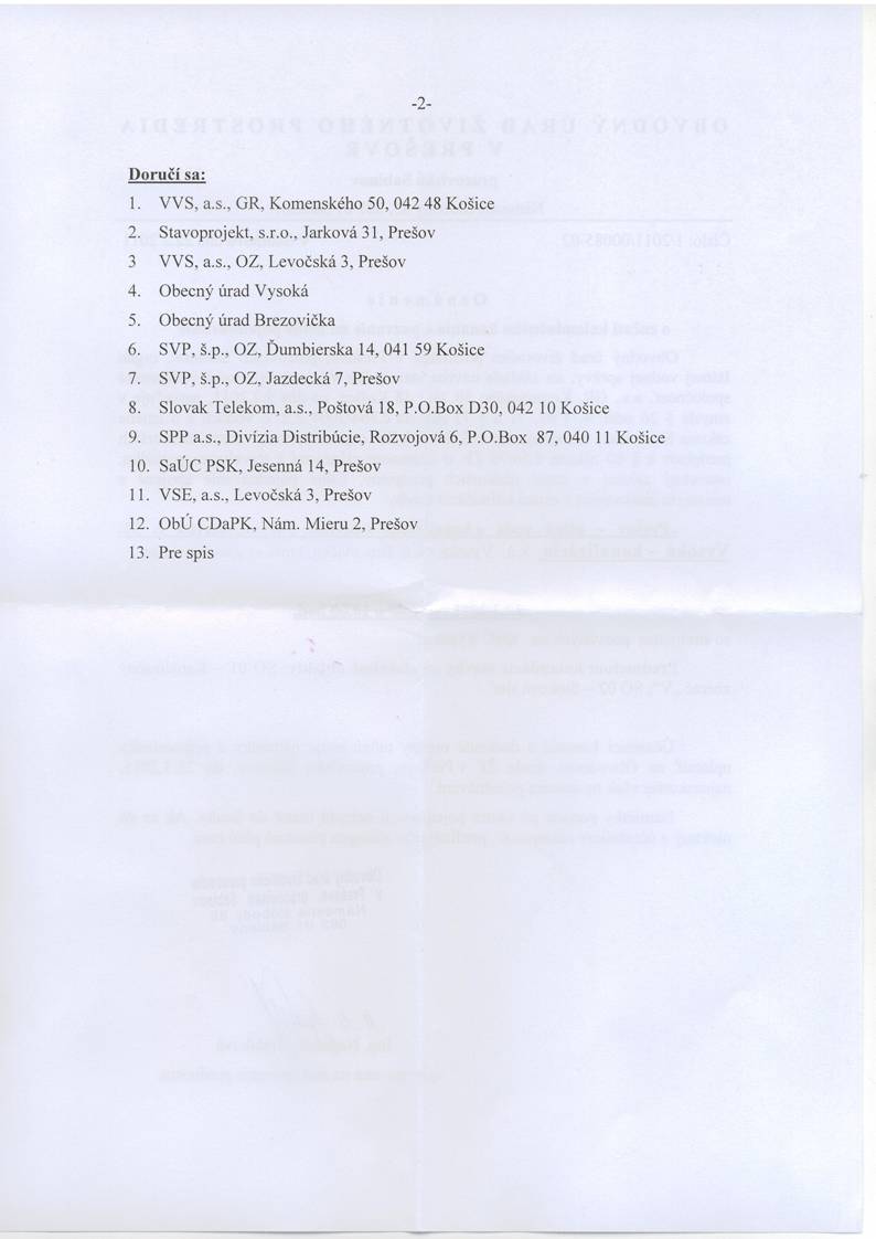 Prešov - pitná voda a kanalizácia v povodí Torysy, stavba č. 50 - VYSOKÁ - KANALIZÁCIA
