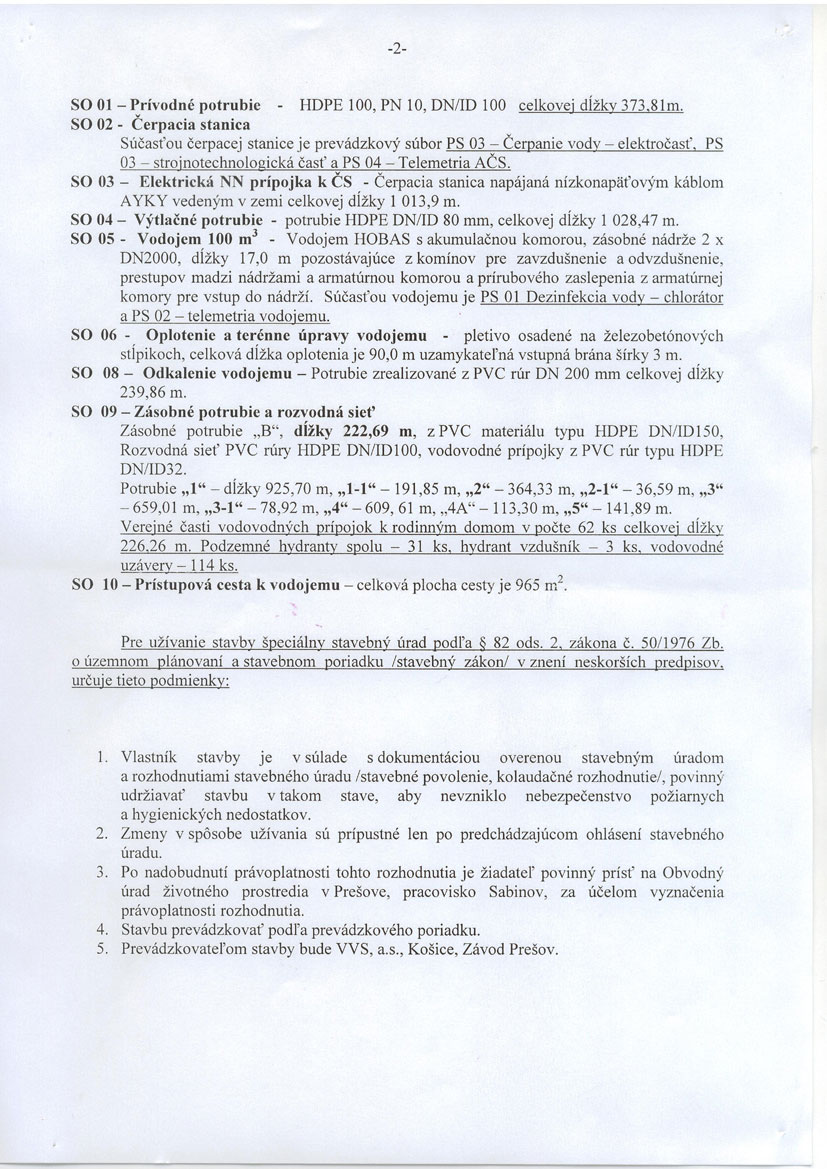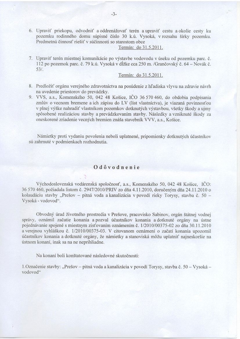 Prešov - pitná voda a kanalizácia v povodí Torysy, stavba č. 50 - VYSOKÁ - VODOVOD